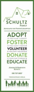 Johann and Genevieve are known as The Schultz Foster Family in Pretoria, South Africa. “Our mission is to provide a nurturing normal home for abused and abandoned children, embodying our belief that "children flourish in families."